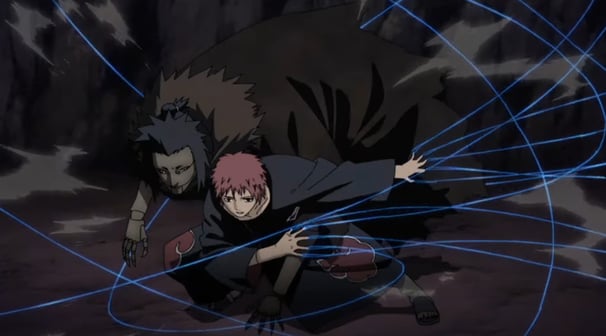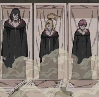 O ninja manipulador de marionetes Sasori desenvolveu uma técnica verdadeiramente perturbadora: a transformação de pessoas vivas em marionetes humanas. Este processo: