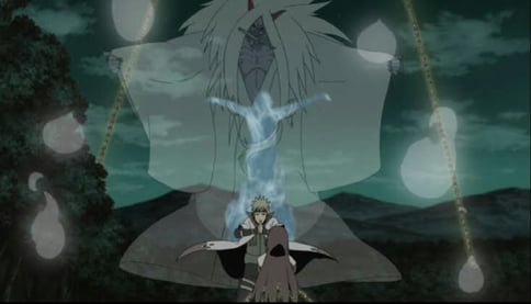 · Pelo Quarto Hokage, Minato Namikaze, para selar a Kyuubi em seu filho Naruto