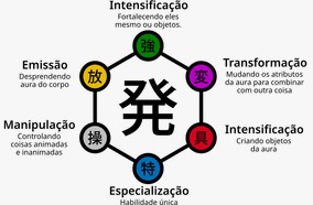 O sistema de Nen é dividido em seis categorias principais, cada uma com características únicas. Vamos conhecer cada uma delas: